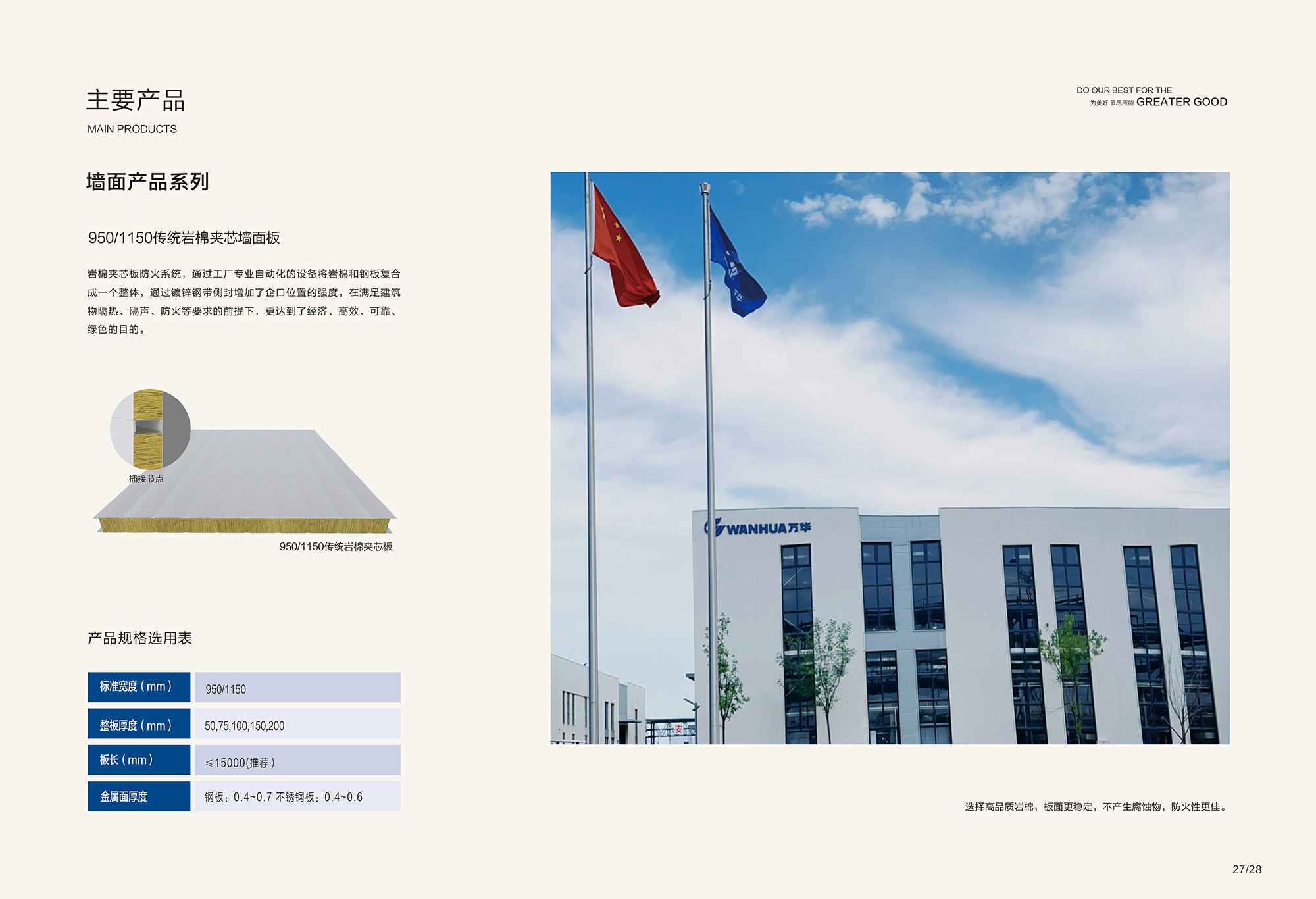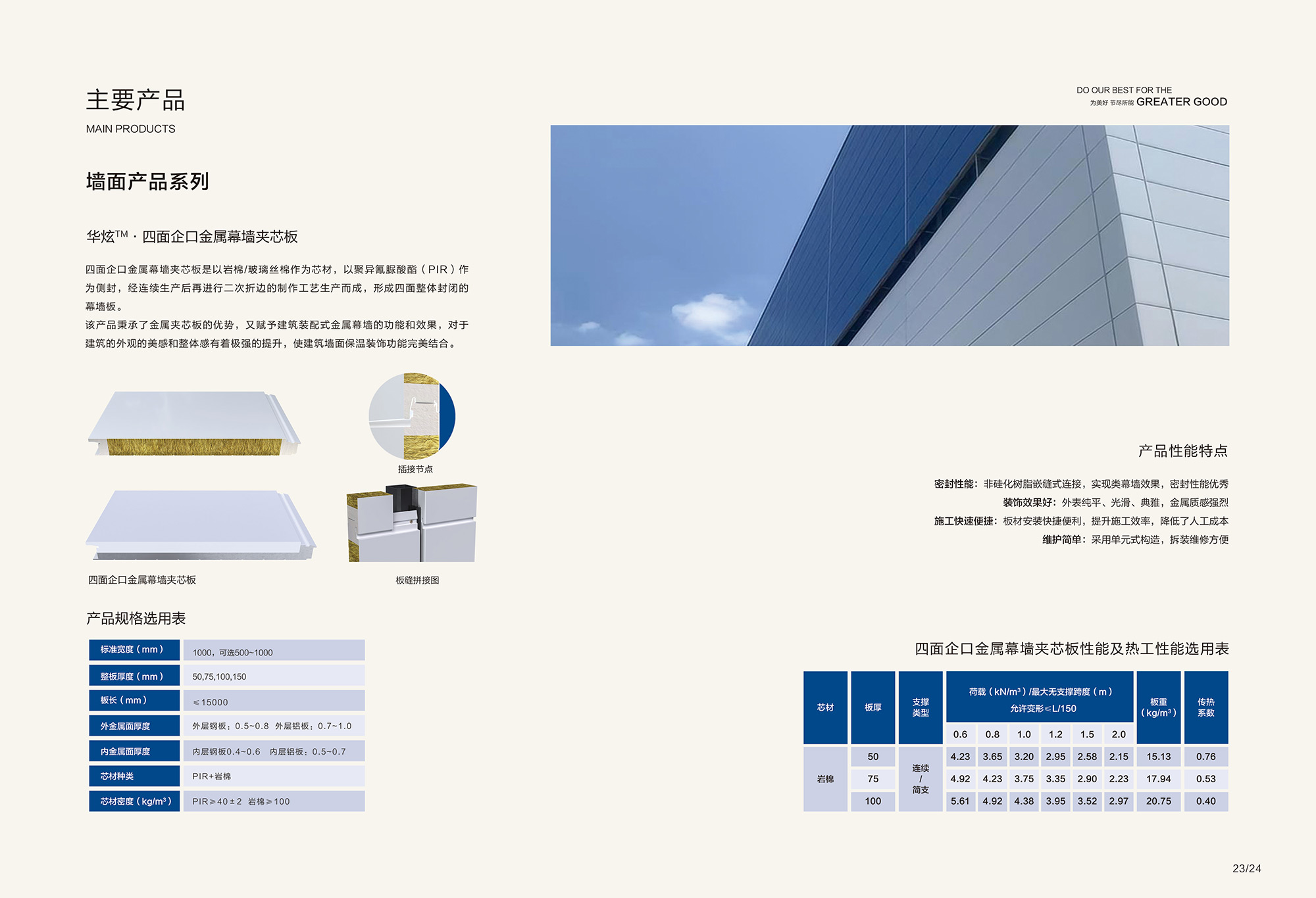 德赢VWIN节能金属面岩棉夹芯板墙面系统燃烧性能A级,隐钉式企口、建筑立面美观、大气,系统防水性和气密性强,高防腐、高耐久金属面饰,施工方便快捷。 德赢VWIN节能金属面聚异氰脲酸酯墙面系统采用热固性聚异氰脲酸酯(PIR)材料,节能高效环保,力学性能优越、坚固耐用,高防腐、高耐久金属面饰。